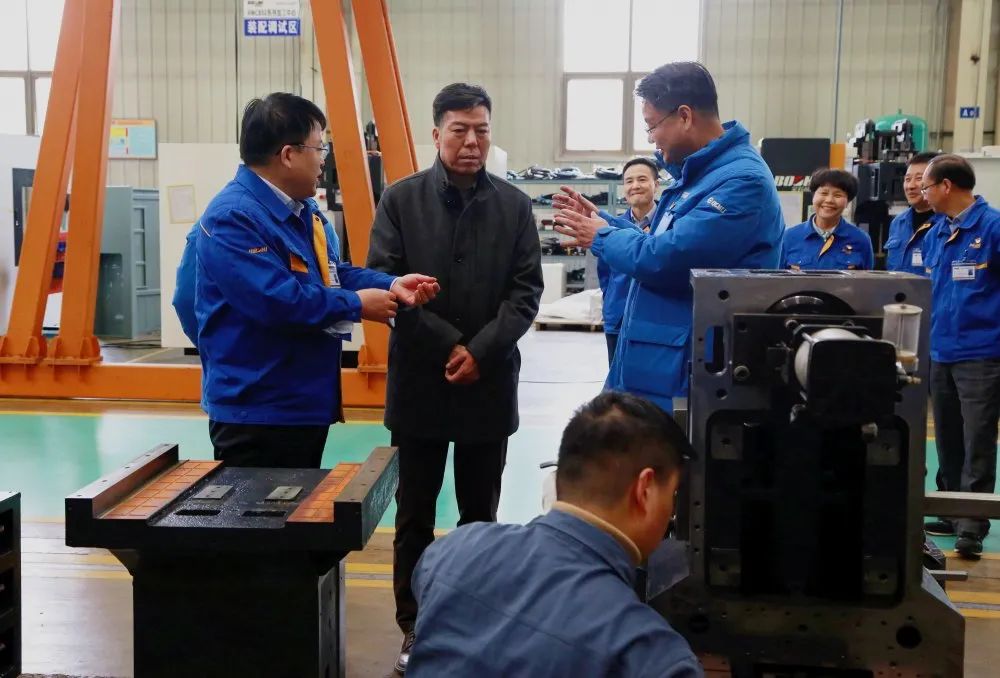 在寶雞機(jī)床的整機(jī)裝配、數(shù)字化車間,嚴(yán)董事長詳細(xì)了解企業(yè)一季度生產(chǎn)任務(wù)安排及完成情況,對企業(yè)新產(chǎn)品研發(fā)、智能產(chǎn)線等重點(diǎn)項(xiàng)目進(jìn)行現(xiàn)場指導(dǎo)。