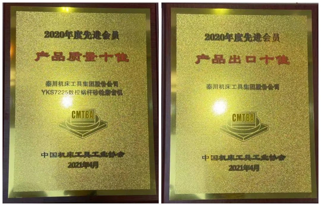 秦川集團榮獲中國機床工具工業協會2020年度先進會員“產品質量十佳”“產品出口十佳”獎項。