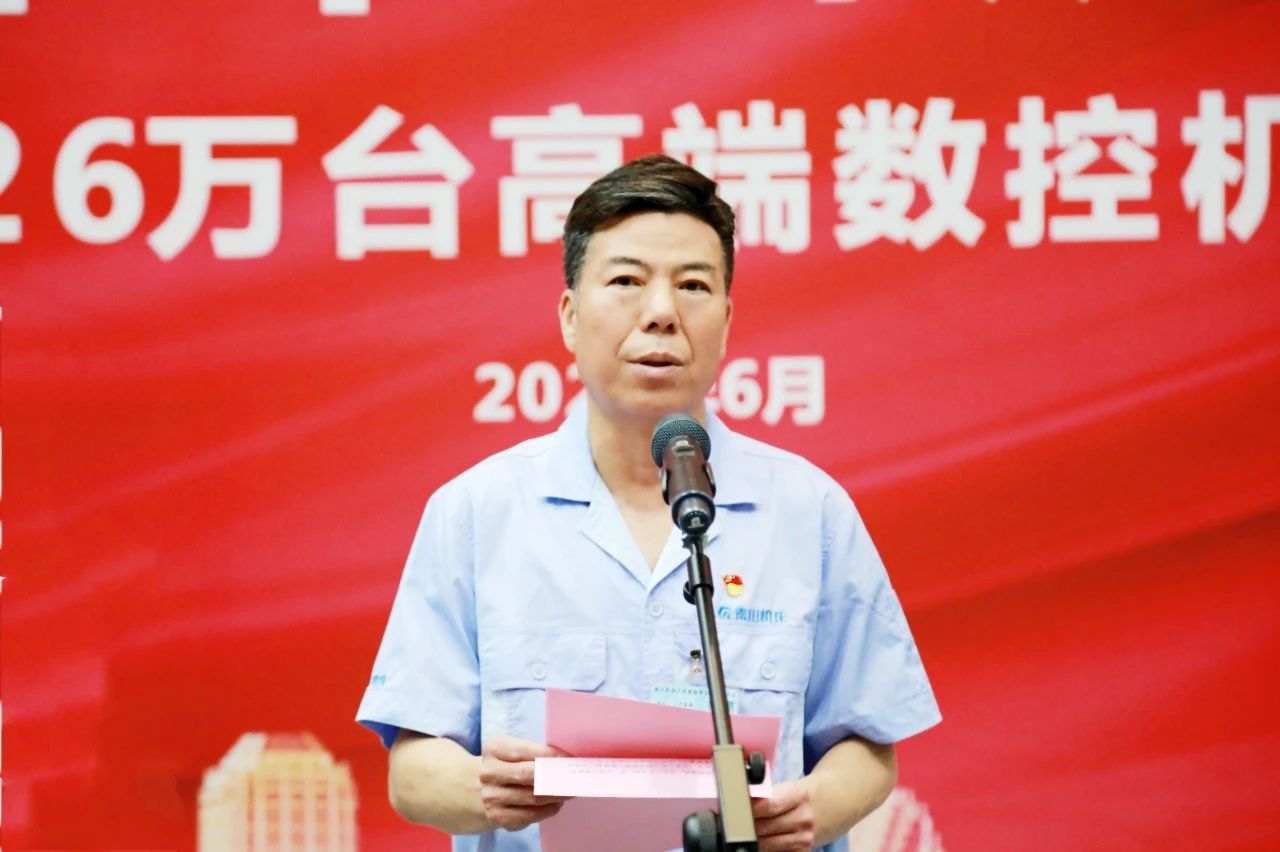 嚴鑒鉑代表集團對第26萬臺高端數控機床順利下線表示熱烈祝賀!向日夜奮戰在生產一線的集團全體員工致以崇高的敬意!